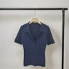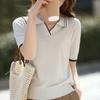 2025 Nuevo Verano Tencel Lyocell Algodón Polo Cuello Tejido Manga Corta Corte para Mujer Recorte Color Puro Camisa Base