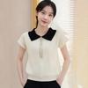 Camiseta estilo hotel 2024 de manga corta para mujer, color a juego, estilo occidental, camisa POLO de media manga para madre de mediana edad, cómoda y transpirable