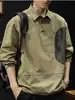 Nuevo Pulóver con Cremallera de Bolsillo Holgado Cuello Polo Estilo Americano Bloques de Color Moda