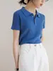 Top de Punto Azul con Cuello de Hombro de Manga Corta para Mujer 2025 Nuevo de Verano Elegante Top Polo Corto para Commuter
