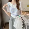 Traje de punto de cintura alta para mujer, estilo coreano, cuello polo, manga corta, moderno, informal, holgado, versátil, ajustado, de verano, 2024