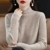 Suéter de cuello alto para mujer, suéter de otoño e invierno, nuevo jersey de color liso, camisa básica de manga larga, suéter de lana ajustado.