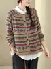 Suéter para Mujer 2025 Nuevo Otoño e Invierno Diseño Retro Estampado de Rayas Estilo Occidental Versátil Cardigan de Punto de Algodón