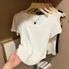 Nueva Camiseta de Manga Corta a Rayas Blancas y Negras con Cuello en V Versátil para Mujer 2026 Ajustada Moderna Comercio Exterior al por Mayor