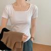 Camiseta de manga corta con cuello cuadrado azul Klein para mujer, ajustada, de verano, con cuello ancho y clavícula, estilo francés, retro, sexy, de media manga.