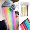 Mayorista transfronterizo fibra química colorida clip de una pieza extensión de cabello tinte de oreja pieza de peluca extensión de cabello con reflejos sin costuras peluca de cabello liso