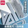 Set de Reglas Deli Vc19 de Metal de Cuatro Piezas Regla de 15cm Línea Ondulada Regla Multifuncional Regla Triangular Transportador Estudiante