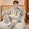 Pijama de Terciopelo Coral para Hombre, Engrosado de Invierno y Terciopelo, Los Adolescentes Pueden Usar Ropa de Casa para Hombre de Otoño e Invierno