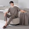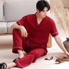 Pijama de Hombre Primavera y Otoño Nuevo Pantalón Largo Delgado Seda de Hielo Juventud Ropa de Casa Traje de Seda Tallas Grandes