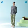 Llegada Nueva Primavera 2026 Pijamas Manga Larga Rayas Casual Ropa de Casa Conjunto Ropa Exterior Hombres Primavera y Otoño Pantalón Largo