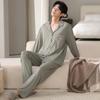 Algodón de Xinjiang antibacterianoAlgodón elástico de grado A primavera y verano casual nuevo conjunto de pijama de manga larga de algodón puro