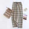 Pantalones de Pijama para Pareja Verano Nuevo Hilo de Algodón Cómodo Simple Pantalones para Hombre y Mujer a Cuadros Japoneses Transpirables Pantalones para Casa Pantalones para Aire Acondicionado