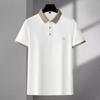 Polo británico para hombre, verano 2024, de seda de hielo, bordado de alta gama, corte entallado, manga corta, contraste, camiseta Lapp.