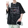 Camiseta corta estampada estilo Hong Kong para hombre, holgada, de manga corta
