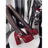 Primer Encuentro Ji Francés Tacón Oculto Moño Boca Baja Punta Cuadrada Mary Janes Elegantes y Hermosos Estilo Suave Zapatos de Noche No Cansan los Pies