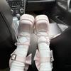 Zapatos de Tacón Grueso con Hebilla Cuadrada, Nuevo Estilo Primavera, Retro Francés, Punta Cuadrada Baja, Tacón Grueso, Zapatos de Tacón Alto para Commuter para Mujer