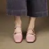 Zapatos de suela baja de cuero genuino con punta cuadrada y escote bajo, estilo Mary Jane con hebilla, de una sola capa, para uso diario, primavera 2024, súper adorables, de celebridad de Internet