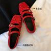 Zapatos de ballet franceses rojos con aumento de altura de 6 cm para mujer, con cinturón cruzado, Mary Jane, color rojo, para primavera