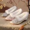 Zapatos antiguos Hanfu de estilo grulla con almohadillas blancas para mujer, atuendo de té inspirado en el Zen, zapatos para ceremonia del té, cheongsam de estilo chino retro, traje Tang, actuación de guzheng.