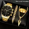 Reloj Popular para Hombre de Comercio Exterior Set de 4 Piezas Gama Alta Esfera Grande Calendario Correa de Acero Reloj Luminoso de Cuarzo para Hombre