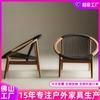 Sofá de madera maciza reclinable individual de ratán tejido nórdico para balcón, silla de ratán redonda para exteriores, patio, arte minimalista, creatividad