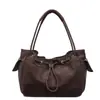 Bolso de Hombro Tipo Tote Grande de Color Café Retro con Cierre de Cordón para Mujer