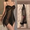 Ropa interior sexy sexy escote en V profundo malla arrugada perspectiva tentación tirantes calientes Secretaria camisón conjunto una generación de cabello