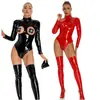 Amor Secreto Brillante y Brillante Talla Grande Alta Elasticidad Cuero Patentado Cuero Brillante Pu Ropa Interior Club Nocturno Cremallera Mallas de Manga Larga