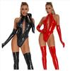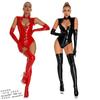 Zhilian Europeo y Americano Talla Grande Aceitado Cuero Brillante Pu Cuero Patentado Íntimos Club Nocturno Entrepierna Abierta Conjunto de Mono