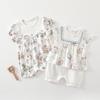 Mono de verano blanco puro de manga corta para recién nacidos, abrigo de algodón para bebés, ropa para bebés Hakka, comercio exterior, ropa para niños al por mayor