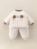 Bolsa Oso Gordo Ropa Gruesa Traje Otoño/Invierno Clase A Ropa de Bebé Cuello Medio Hebilla en el Hombro Manga Larga Bolsa Ropa Gruesa Pantalones Conjunto de 2 Piezas