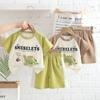 Conjunto de dos piezas para niños y niñas, verano 2024, con cuello redondo y manga corta, pantalones cortos y estampado de dibujos animados