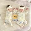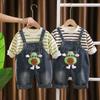 Camiseta de cuello redondo a rayas para bebé, primavera y otoño 2024, nuevos pantalones vaqueros atractivos para niños, conjunto de dos piezas para hombres y mujeres, ropa para niños.