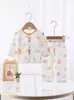 Pijama cárdigan para niños estilo coreano de algodón de manga larga para niños y niñas, ropa exterior para bebés, traje de ropa para el hogar de un solo botón