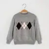 Suéter de punto Fair Isle con rombos para niños y niñas, suéter de punto 100% lana, nuevo top básico de otoño e invierno para bebé
