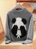 [100% Lana] Nuevo Suéter de Cuello Alto Medio para Niños Suéter de Lana Pura Infantil Patrón de Panda Engrosado Niños Medianos y Grandes