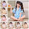 Nuevo cárdigan de manga corta con solapa y estampado de dibujos animados para niños y niñas, de seda helada de colores de verano, ropa para el hogar, talla 8-18