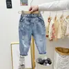Pantalones de moda para niños, primavera y otoño, nuevos y lindos pantalones de mezclilla con agujeros para niños, pantalones para niños de una generación de cabello