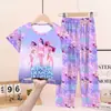 Ropa de casa para niños estilo europeo y americano, conjunto de pijama de verano para niños, conjunto de manga corta de algodón puro, ropa linda de arándanos