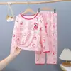 Pijamas de Primavera y Otoño para Niños Transfronterizos de Dibujos Animados para Niñas de Cuello Redondo y Manga Larga Ropa de Verano para Aire Acondicionado Conjunto de Ropa para el Hogar Suelta y Delgada