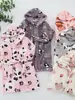 Pijama estampado de franela para niñas ropa de casa niños doble cara polar con capucha bata de baño primavera niños para dormir con bolsillos