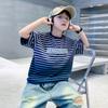 Camiseta de Verano para Niño de Rayas Degradadas de Seda de Hielo de Manga Corta 2024 Nueva Llegada Vestido de Verano para Niño