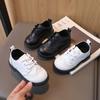 Primavera y Otoño Nuevos Zapatos Negros de Cuero Pequeños para Niños con Cordones Moda Estilo Británico Zapatos de Actuación para Niños Zapatos de Actuación para Niñas Suela Blanda
