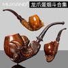 Pipa de Madera de Brezo Tallada a Mano para Hombre Garra de Dragón Huevo Pipa Madera Maciza Antiguo Tradicional Filtro Set Especial para Fumar