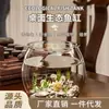 Tanque de peces de vidrio simple y creativo con diseño de viento, paisajismo redondo para el hogar, peces luchadores transparentes, sala de estar pequeña, hidropónico, venta al por mayor