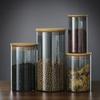 Fábrica al por mayor, frasco sellado de vidrio de borosilicato alto, tapa de bambú, frasco de almacenamiento transparente, frasco de dulces, frasco de almacenamiento de cocina, frasco de té