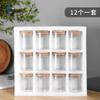 Tapa de bambú juego de 12 frascos de vidrio Algodón perlado caja de almacenamiento de condimentos y frutos secos Caja de almacenamiento de alta resistencia al calor de borosilicato venta al por mayor