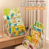 Estantería de escritorio de acrílico tipo escalera, estante de almacenamiento para libros y revistas, soporte de libro para mesita de noche, estante de almacenamiento para libros ilustrados infantiles