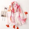 Toalla de playa de algodón y lino con estampado de espiga, de colores brillantes de principios de primavera, pintura a tinta colorida, chal largo colgante con borlas para mujer