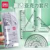 Juego de reglas Deli, regla multifuncional, juego de cuatro piezas, regla triangular, regla de placa, juego de reglas transportadoras, acrílico transparente